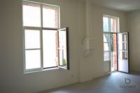 Bij binnenkomst valt meteen de vloerverwarming op gas op, die zorgt voor een aangename temperatuur door het hele appartement. De open, lichte woonkamer (24 m²) biedt direct toegang tot een charmant oostgericht terrasje (5 m²), waar je kunt genieten van een uitzicht op het gezellige plein. De ruimte is gevuld met natuurlijk licht, wat de warme, authentieke details van het interieur prachtig benadrukt.