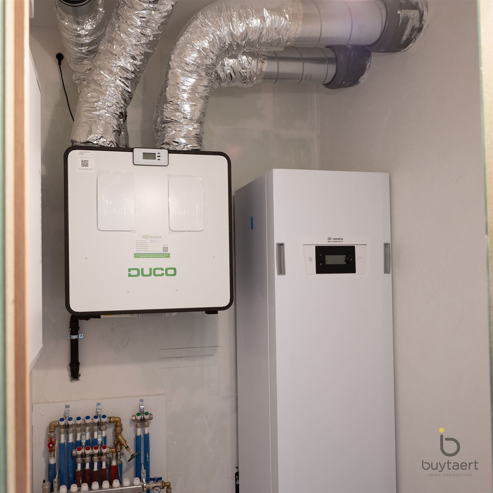 Beleef luxe, comfort en energiezuinigheid in een karaktervolle architectuur! EERSTE VERDIEPING: een twee slaapkamer appartement in het hartje van Schilde, de werken van deze prachtige NIEUWBOUW project GUIBERTUS zijn zo goed als klaar. In een kleinschalig project met lift bevindt zich dit appartement op de eerste verdieping en omvat een inkomhal, gastentoilet, leefruimte met ingerichte open keuken voorzien van alle nodige toestellen, berging/wasplaats met aansluiting voor wasmachine en droogkast, 1 grote en 1 kleine slaapkamer, een ingerichte badkamer en een terras (16.50 m²). Hiervoor zijn budgetten voorzien in het lastenboek. De ondergrondse parking zorgt ervoor dat thuiskomen in alle comfort kan gebeuren, ondergrondse autostaanplaatsen zijn apart beschikbaar vanaf €30.000. Het woonproject Guibertus in het hartje van Schilde is een nieuwbouw met 3 verschillende, maar harmonieus op elkaar afgestemde typologieën. Elke gevel heeft zijn eigen persoonlijkheid. Van strak tot statig met een twist. In deze landelijke gemeente nabij Antwerpen is het aangenaam vertoeven. Schilde heeft voor ieder wat wils. Gezellig een terrasje doen, met de kinderen op pad, een fijne wandeling met vrienden. De mogelijkheden zijn eindeloos. Bakker, cafeetje, openbaar vervoer, u vindt het allemaal op korte wandelafstand. Liever er even tussenuit om te genieten van de natuur? Geniet van één van de vele parken die Schilde rijk is of breng een bezoek aan het Fort van 's-Gravenwezel of de Schans van Schilde. Wanneer u de gemeente toch wilt verlaten, bevindt de E34 zich vlakbij. De auto parkeert u via de autolift eenvoudig in de parkeergarage. Elke unit is met zorg ontworpen door het team van architect, ontwikkelaar en studiebureaus. Er is aandacht geschonken aan de ruimtelijke beleving waarbij de positie en grootte van de ramen zorgen voor een optimale lichtinval. De appartementen zijn hoogwaardig afgewerkt. Smart Home - domotica garandeert meer leefcomfort vandaag en morgen. Geen gasfactuur meer dankzij lucht-water warmtepompen. De afwerking en materialisatie van uw appartement worden verder toegelicht in het lastenboek. EXTRA's De onverkochte appartementen hebben reeds in de schachten een kabel voor zonnepanelen klaargelegd. Op deze manier kunnen deze ook nog eenvoudig minstens 2 of meerdere zonnepanelen laten plaatsen. Mogelijkheid tot het plaatsen van een laadpaal. Regenwaterput aanwezig en wordt gebruikt voor de toiletten van het hele gebouw. De zone vooraan het gebouw (vanaf de voorgevel) zal netjes aangelegd worden. DE TROEVEN - Uitmuntende ligging met alle faciliteiten en openbaar vervoer vlakbij - E34 eenvoudig te bereiken - Ruime terrassen of een fijne stadstuin - Duurzame materialen en technieken - Energie-zuinige BEN appartementen - CO 2 neutrale warmtepompen en mogelijkheid tot vloerkoeling - High-end afwerking met parket en vloerverwarming - Balansventilatie (type D) aanvoer verse lucht en afvoer vochtige lucht Prijzen zijn vermeld excl. kosten, registratie op de grondwaarde en btw op de constructiewaarde, notariskosten en ereloon, aansluitingskosten nutsvoorziening. Contacteer ons voor bijkomende info of plan alvast bij ons op kantoor uw afspraak! www.buytaertimmo.be.