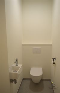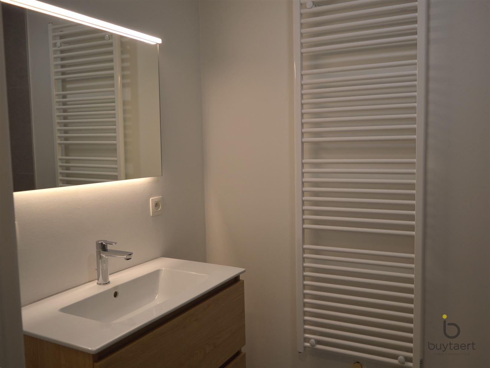 De slaapkamer (11.5 m²) is ruim genoeg terwijl de badkamer is uitgerust met een inloopdouche. Het apart toilet met handenwasser biedt extra gebruiksgemak.