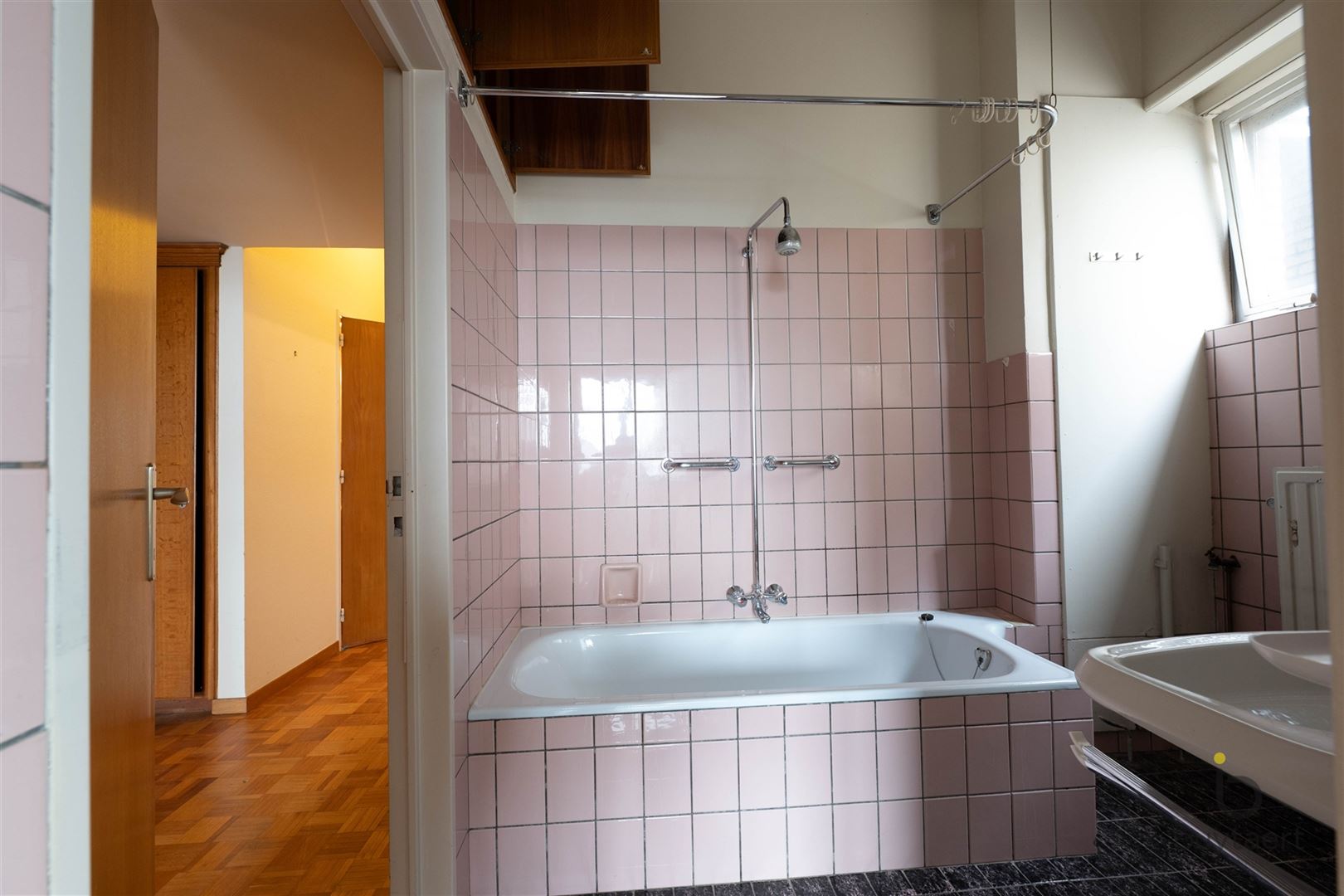 Drie slaapkamers met voldoende ruimte voor een comfortabel bed en kasten. De badkamer voorziet momenteel een bad en 2 lavabo’s. Hier vind je ook een bovengelegen ruime opbergzolder.