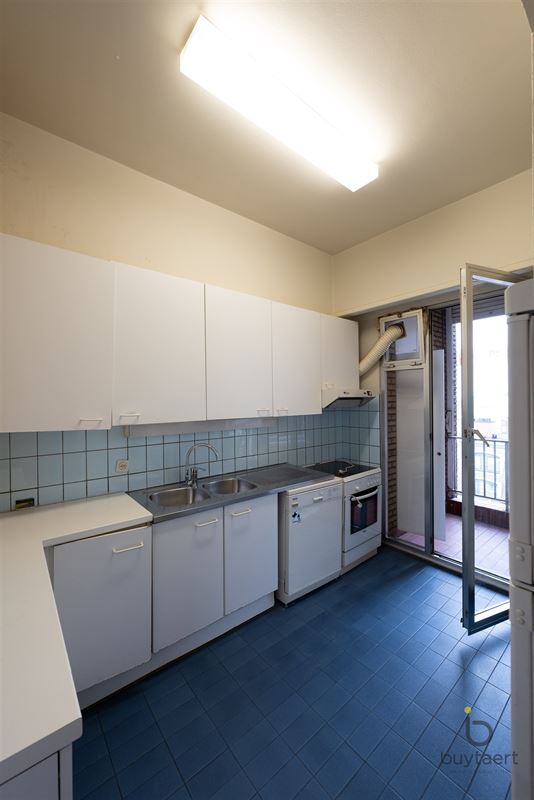 Binnenkomend in de hal wordt u verwelkomd in de leefruimte met grote ramen die natuurlijk licht binnenlaten en een prachtig breed uitzicht over de stad bieden. Naastgelegen de keuken met een terrasje afsluitbaar met een rolluik.