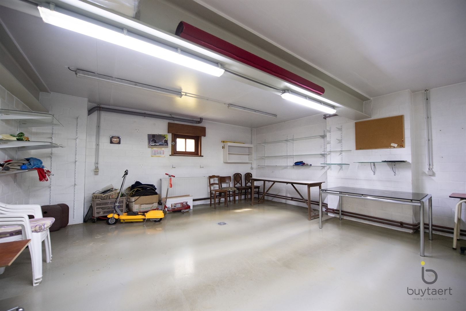 Deze gelijkvloers ruimte is bereikbaar via de centrale inkomhal of een aparte toegangsdeur of via de automatische garagepoort. Er is een toilet en watervoorziening.