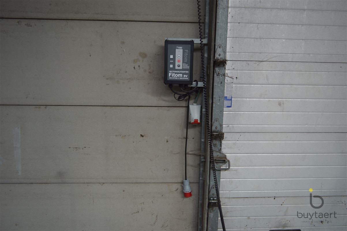 Toegang via metalen deur en sectionale poort (4,2 m hoog x 3,9 m breed). Ideaal voor opslag of werkruimte.