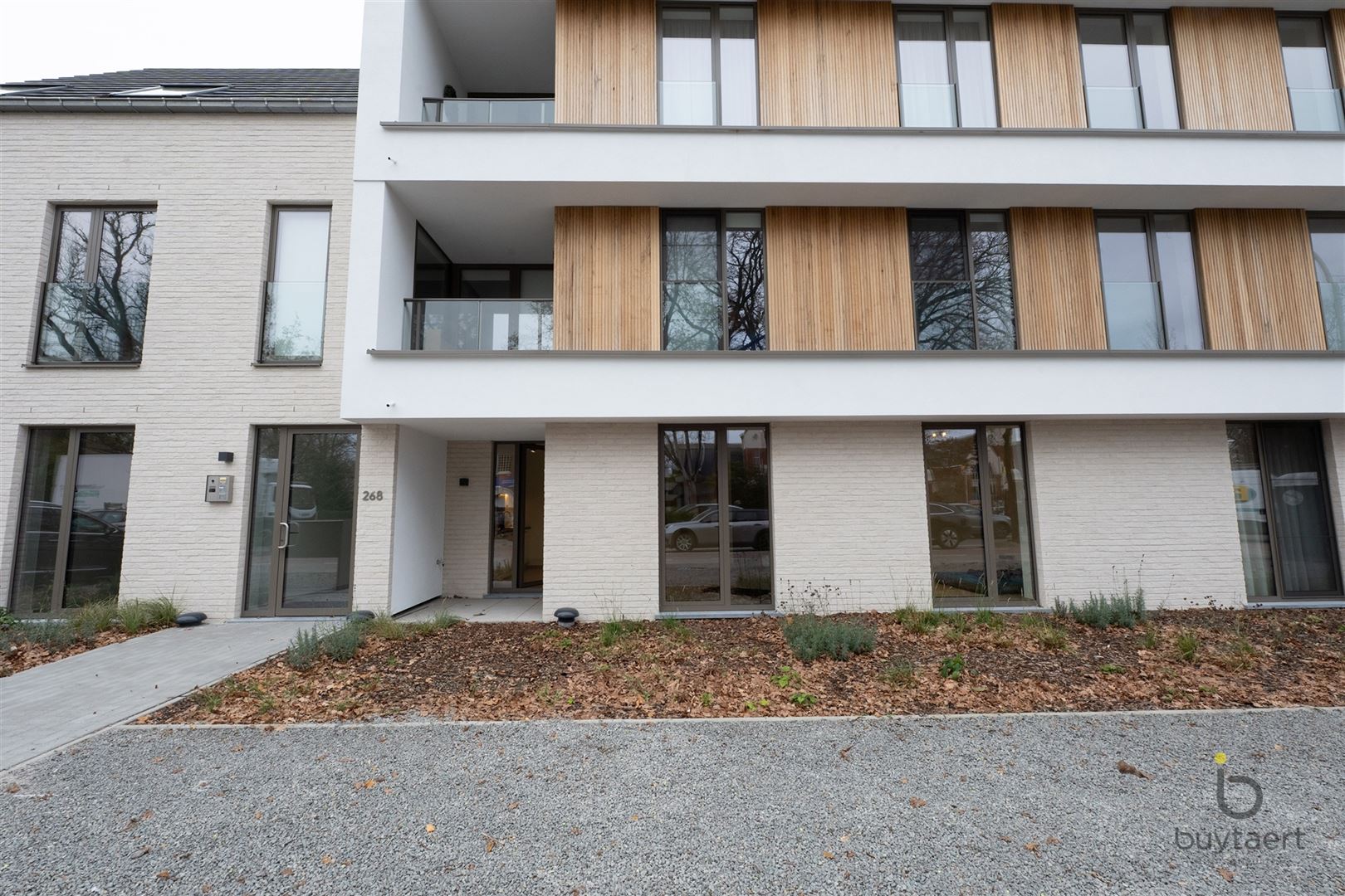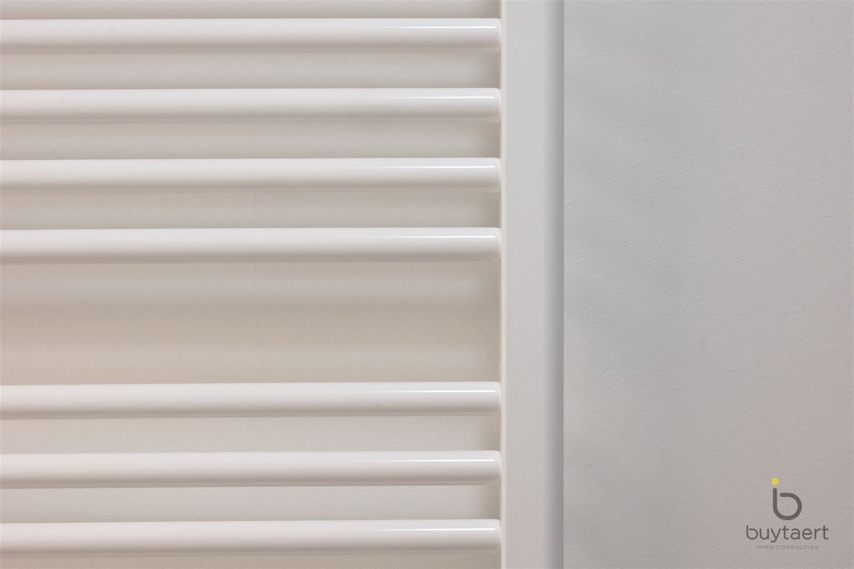 In een recente, energiezuinige nieuwbouwresidentie bevindt zich dit stijlvolle gelijkvloerse appartement met 1 slaapkamer. De woning is volledig afgewerkt met een tegelvloer en wordt bij oplevering volledig wit geschilderd. Verlichting is reeds voorzien, zodat u enkel nog hoeft in te richten. De lichtrijke woonkamer (30 m²) met open keuken vormt het hart van het appartement en biedt rechtstreeks toegang tot een aangenaam terrasje aan de voorzijde. De keuken is modern en praktisch ingericht. De slaapkamer (11.5 m²) is ruim genoeg terwijl de badkamer is uitgerust met een inloopdouche. Het apart toilet met handenwasser biedt extra gebruiksgemak. In de berging is er aansluiting voorzien voor een wasmachine. Het appartement wordt verwarmd via vloerverwarming op basis van een warmtepomp, in combinatie met 3 zonnepanelen, wat zorgt voor een bijzonder energiezuinige woonst. Een ventilatiesysteem D garandeert een gezonde luchtcirculatie doorheen de hele woning. In het gebouw is er een gemeenschappelijk vuilnislokaal, een fietsenstalling nr 83, en op de ondergrondse verdieping (niveau -1) beschikt u over een privatieve autostaanplaats nr 17. Tot slot kunt u als bewoner ook genieten van een aangelegde gemeenschappelijke tuin. Kortom, dit instapklare appartement combineert comfort, duurzaamheid en een doordachte indeling in een rustige, hedendaagse woonomgeving. Vaste kosten €90 p/mnd + €100 Parking. Beschikbaar vanaf 01/12/2025. www.buytaertimmo.be