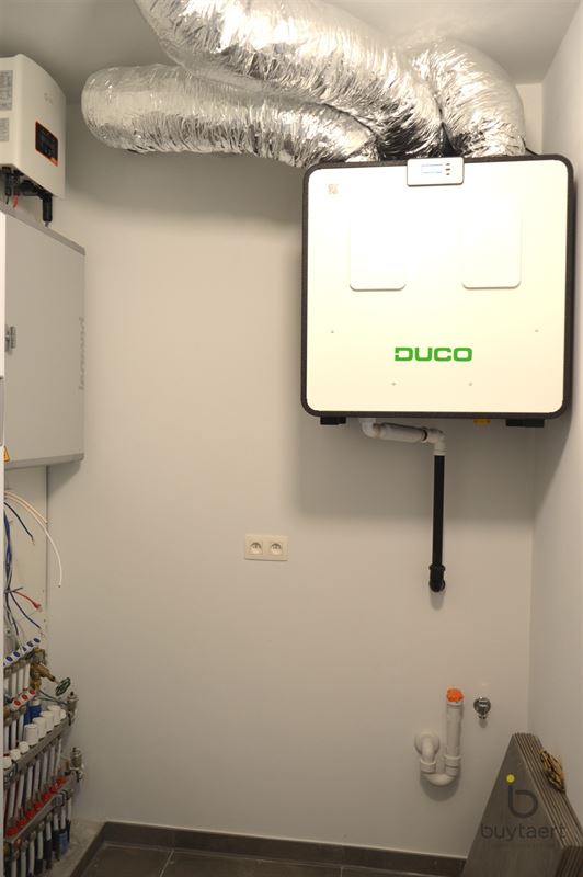 Verder is er een praktische berging met aansluiting voor wasmachine, een badkamer met inloopdouche en een apart toilet. Extra comfort wordt geboden door vloerverwarming, een warmtepomp, 2 zonnepanelen en vliegenramen, wat resulteert in een laag energieverbruik en optimaal wooncomfort.