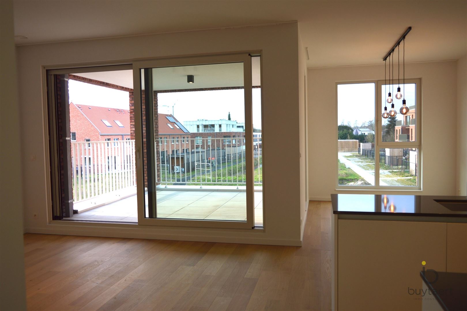 Luxe nieuwbouw met ruim terras, wonen, werken en ontspannen. Dit instapklare nieuwbouwappartement in Sint-Antonius (Zoersel) combineert moderne luxe met een uitzonderlijke energie-efficiëntie dankzij het EPC A-label, een warmtepomp, vloerverwarming en zonnepanelen. De lichte leefruimte (34 m²) op een stijlvolle parketvloer is reeds voorzien van moderne verlichting en gordijnrails, en loopt over in een ruim terras (11 m²) waar u geniet van een rustgevend, open uitzicht. Met drie slaapkamers biedt de indeling een unieke kans voor een koppel om naast een master bedroom (12 m²) ook een thuiskantoor (7m²) en een aparte dressing (7m²) in te richten. Verder beschikt de woning over een badkamer met inloopdouche, een apart toilet, een handige berging met wasmachine-aansluiting en het comfort van een ondergrondse parking (€100 p/mnd) met extra privé-berging alsook fietsenstalling. Vaste kosten €100 p/mnd. Onmiddellijk beschikbaar.