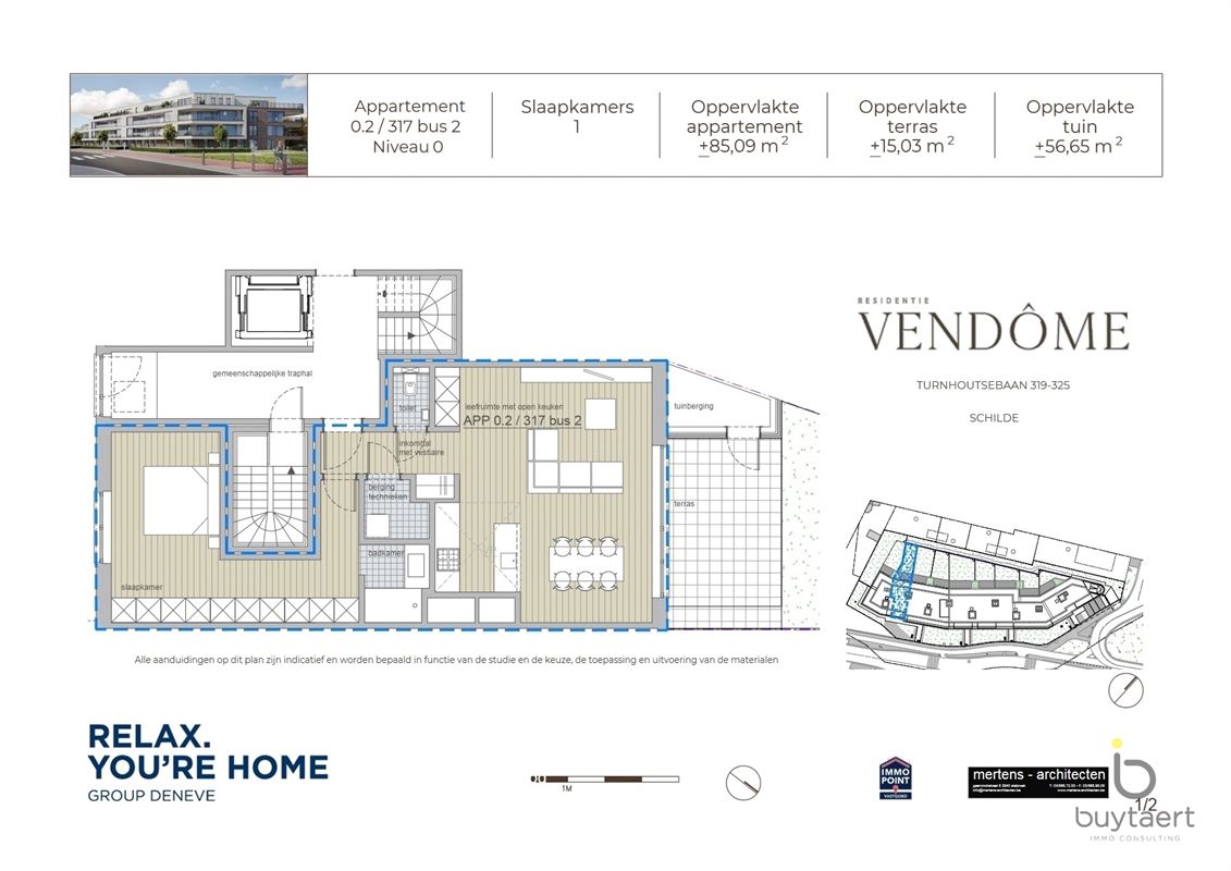 Cosy GELIJKVLOERS één slaapkamer appartement in het centrum van Schilde. In een modern gebouw met lift bevindt zich dit appartement op de gelijkvloerse verdieping, deze omvat een inkomhal met vestiaire ruimte, gastentoilet, leefruimte met toegang tot het terras, privatieve tuin, ingerichte open keuken met alle nodige toestellen, berging/wasplaats met aansluiting voor wasmachine en droogkast, 1 slaapkamer en een ingerichte badkamer met een lavabomeubel en inloopdouche. Gezellig ingerichte tuintje met tuinberging zodat u optimaal kan genieten van de avondzon. De ondergrondse parking zorgt ervoor dat thuiskomen in alle comfort kan gebeuren, dit appartement is voorzien van 1 autostaanplaats en een privatieve berging. Alsook een gemeenschappelijke fietsenberging. Afwerking: aluminium ramen, hr+ beglazing, vloerverwarming, cv op gas, voorzien van 2 privatieve zonnepanelen, gebouwd volgens BEN-principes, E-peil max 30,... Centrale ligging, gelegen nabij het dorp, vlakbij winkels, openbaar vervoer, gemakkelijke bereikbaarheid, in de buurt van fiets- en wandelroutes om de natuur op te zoeken. Dit appartement is wit geschilderd, gordijnrails en verlichting zijn voorzien. Maandelijkse kosten : €90p/mnd. Beschikbaarheid 1 Mei 2026. Bel of mail ons voor een bezichtiging.
