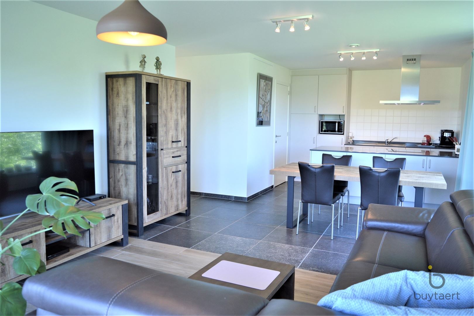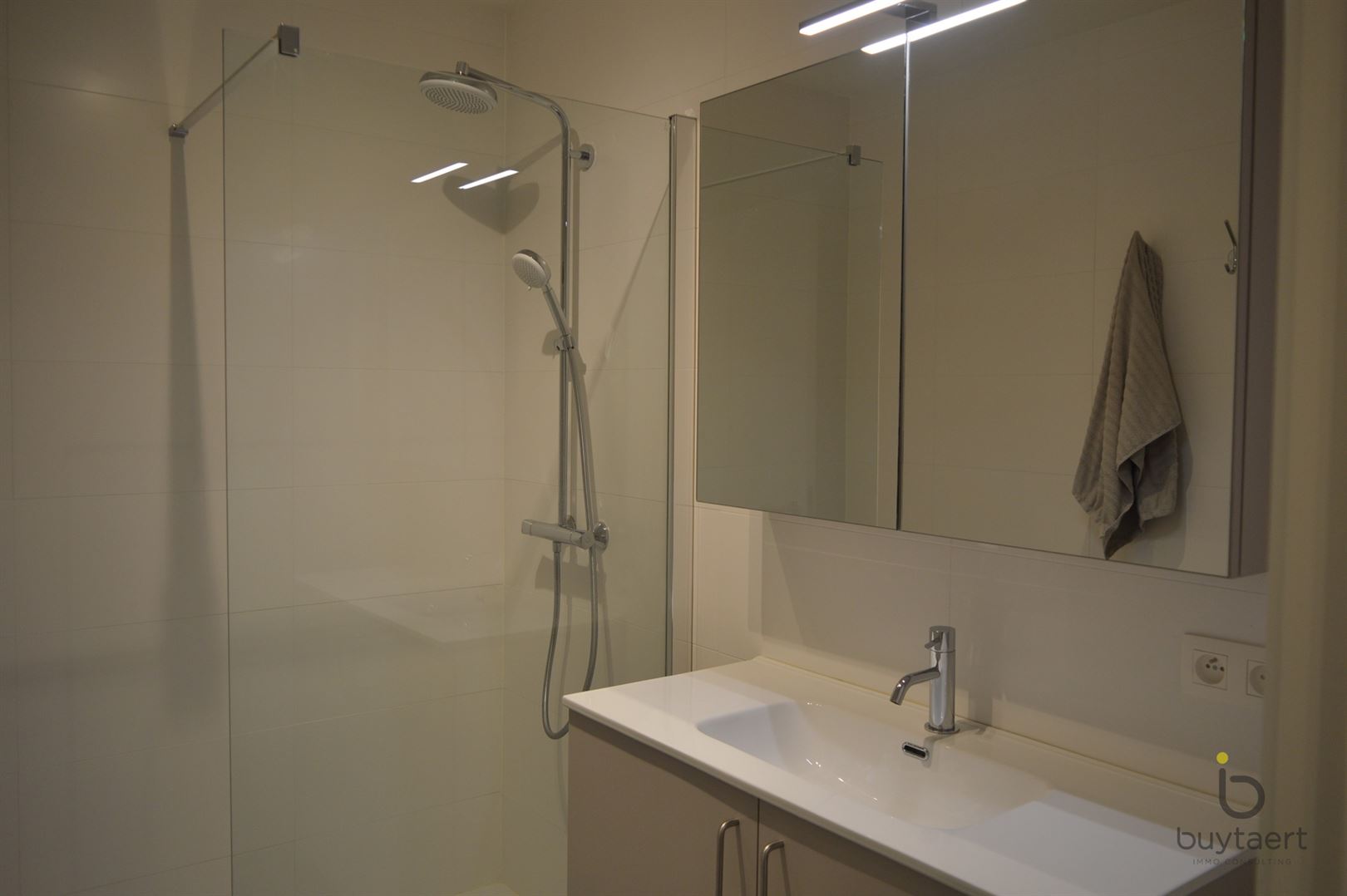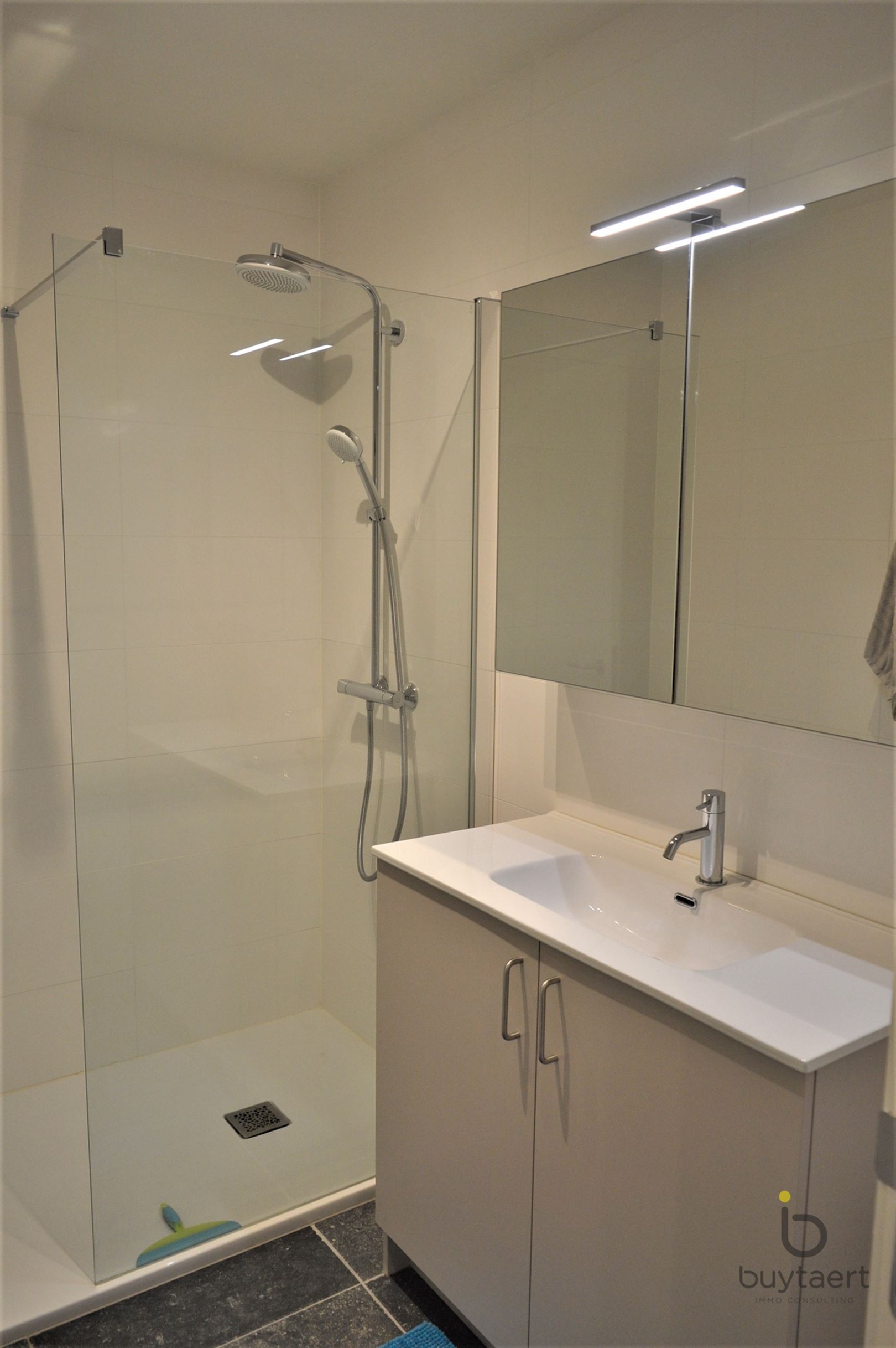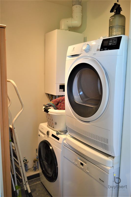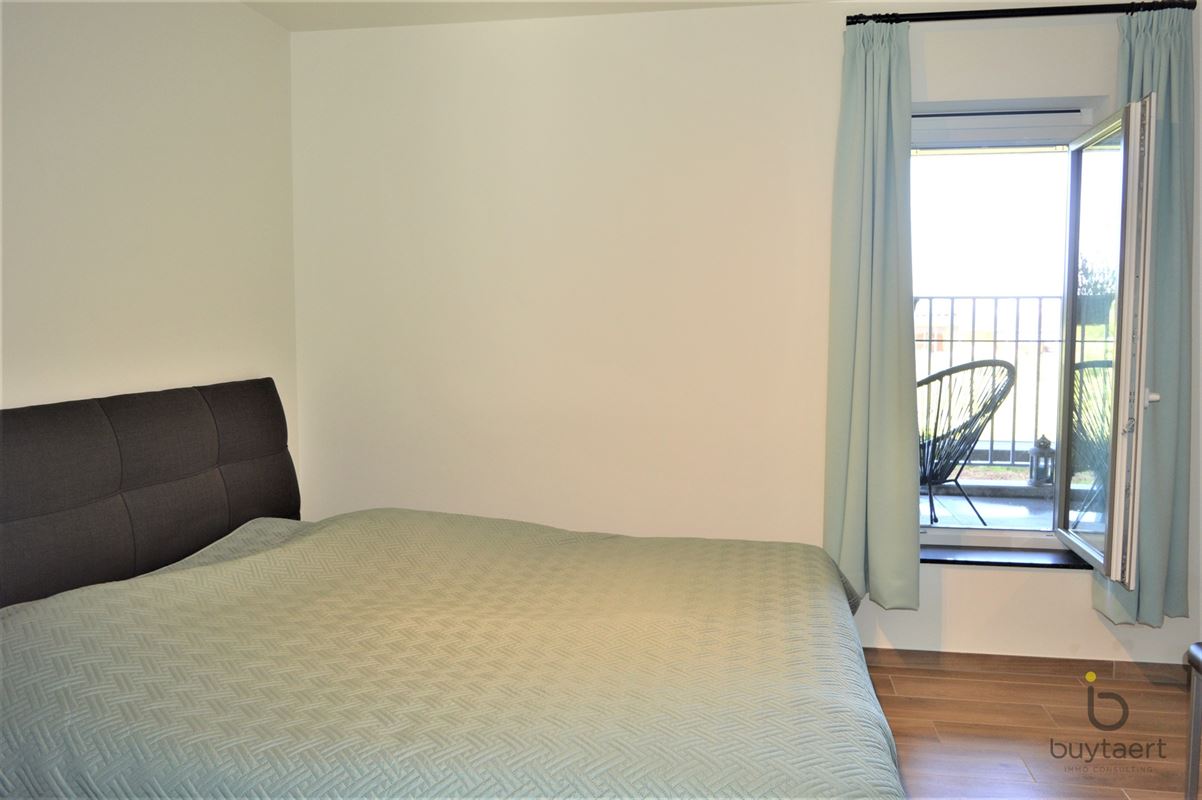 Dit BEN-appartement met twee slaapkamers biedt een unieke combinatie van comfort, ruimte en energiezuinig wonen. Bij het betreden van het appartement valt meteen de hoogwaardige afwerking op. De leefruimte is stijlvol ingericht met een elegante parkettegel, terwijl de keuken, badkamer, het toilet en de berging afgewerkt zijn met een zwarte stenen vloer. Alles is volledig wit geschilderd en voorzien van moderne verlichtingsarmaturen, wat zorgt voor een tijdloze uitstraling. De open keuken is een echte eyecatcher en uitgerust met toestellen ideaal voor wie graag kookt. Het appartement beschikt over twee volwaardige slaapkamers met grote ramen die zorgen voor veel natuurlijk licht en een mooi, open uitzicht. De ramen kunnen op draaikipstand geplaatst worden voor extra ventilatie en comfort. De badkamer is stijlvol ingericht en voorzien van een bad of een inloopdouche, gecombineerd met een modern meubel en spiegel. Daarnaast is er een apart toilet met handenwasser en een praktische, ruime berging met aansluiting voor wasmachine en droogkast. Een absolute troef is het ruime terras, waar je in alle rust kan genieten van het prachtige uitzicht op de omliggende velden, beken en groenaanleg. Verder beschikt het appartement over een private kelderberging (inbegrepen in de huurprijs), evenals toegang tot een fietsenstalling. Een autostaanplaats is beschikbaar aan 80 per maand. De vaste kosten bedragen 90 per maand.
