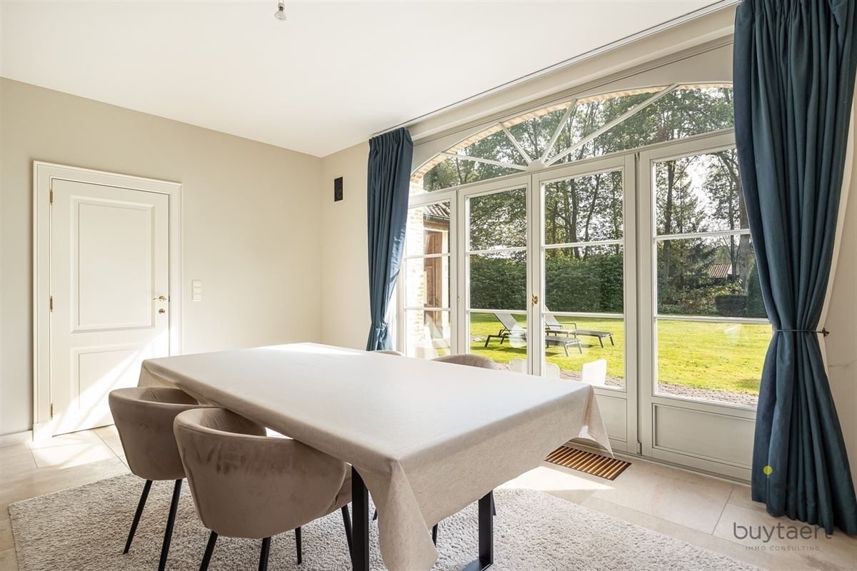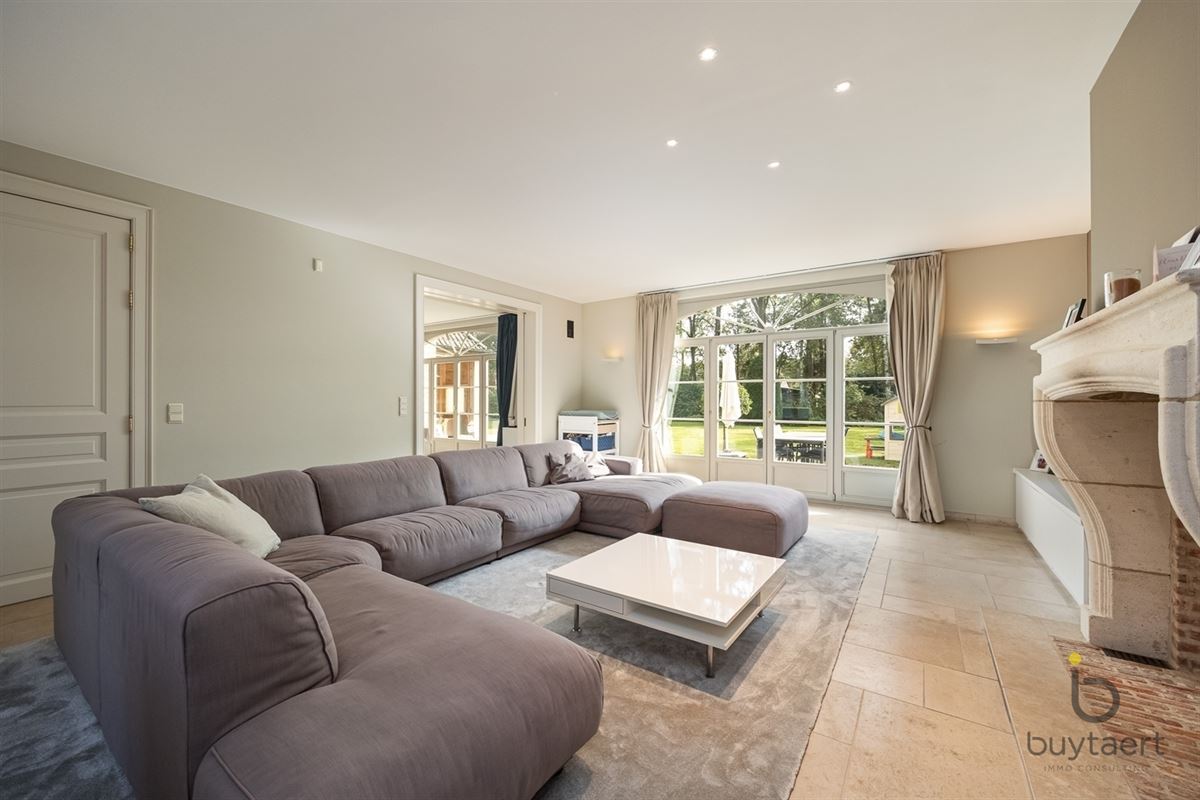 Prachtige villa in een aangename omgeving te Halle / Zoersel! Dit prachtig eigendom tussen de dorpskernen van Sint-Antonius en Halle, gelegen in een éénrichtingstraat, straalt charme en comfort uit. Bij het binnenkomen van de woning word je verwelkomd in een ruime hal met een mooie natuurstenen trap naar de eerste verdieping. Inkomhal met gastentoilet en vestiaire ruimte. De riante woonkamer met grote ramen dat uitzicht geeft op de tuin, creëert een overvloed aan natuurlijk licht. Salonruimte met een schouw voor een haard dat een uitnodigende warme sfeer geeft, er zijn geautomatiseerde gordijnen. Aansluitend bevindt zich een stijlvolle eetkamer met uitzicht op de tuin, ideaal vertoeven voor gezellige avonden met vrienden en familie. De keuken is uitgerust met een ruim kookeiland, voorzien van alle nodige apparatuur en voldoende opbergruimte. Daarnaast is er een grote berging met voldoende opbergplaats en een extra lavabo en douche. Vanuit het salon is er een dubbele deur naar de inkomhal. De villa beschikt over vier zeer ruime slaapkamers, waarvan er drie zich op de eerste verdieping bevinden. De master bedroom met dubbele deur biedt toegang tot een mooie dressing en ensuite badkamer met dubbele lavabo, inloopdouche, ligbad en een aparte ruimte met aansluiting voor uw wasmachine en droogkast. De tweede badkamer beschikt tevens over een wastafel met dubbele lavabo's, douche en ligbad. Via een vaste trap bereik je de tweede verdieping en vinden we een mooie volledig afgewerkte ruimte, die kan dienen als 4de slaapkamer of polyvalente ruimte. Het dak werd onlangs extra geïsoleerd, verwarming / airco warmtepomp, nieuwe cv ketel op gas bj 2024, parket nieuw opgeschuurd,... Een mooi open zuid-tuin waar rust en privacy centraal staan. Een overdekt terras met haard / bbq zorgt ervoor dat je het hele jaar door buiten kan genieten. Verder is er een dubbele inpandige garage met twee automatische poorten, en het perceel is omheind en afgesloten met een automatische poort. Leuke omgeving, nabij mooie fiets- en wandelroutes en een goede verbinding met uitvalswegen. Kortom, deze villa biedt alles voor wie op zoek is naar ruimte, comfort en een landelijke setting in een groene omgeving. Welkom voor een bezoekje!