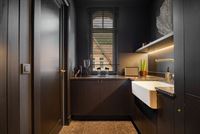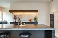 Aansluitend is er een knappe open keuken, volledig uitgerust met hoogwaardige apparatuur en een riant eiland. Tevens is er een aangename ontbijttoog en achterliggende bijkeuken met extra koelkast, diepvriezer en aansluitingen voor de wasmachine en droogkast. Eveneens een technische ruimte met extra berging.